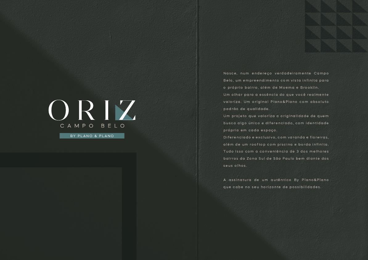 O Residencial Oriz Campo Belo, da Plano&Plano, é um lançamento exclusivo pensado para quem busca sofisticação, localização privilegiada e qualidade de vida, em um dos bairros mais desejados de São Paulo.