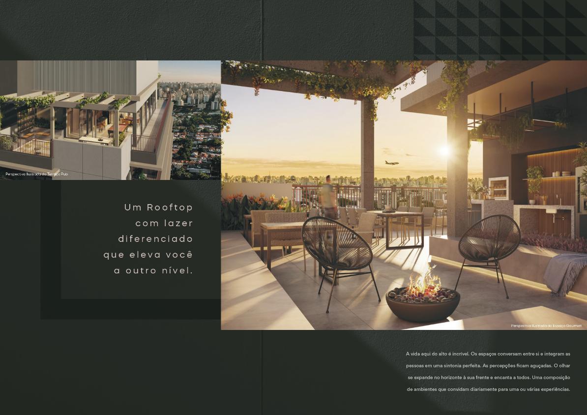 O condomínio possui lazer elevado no rooftop, com: