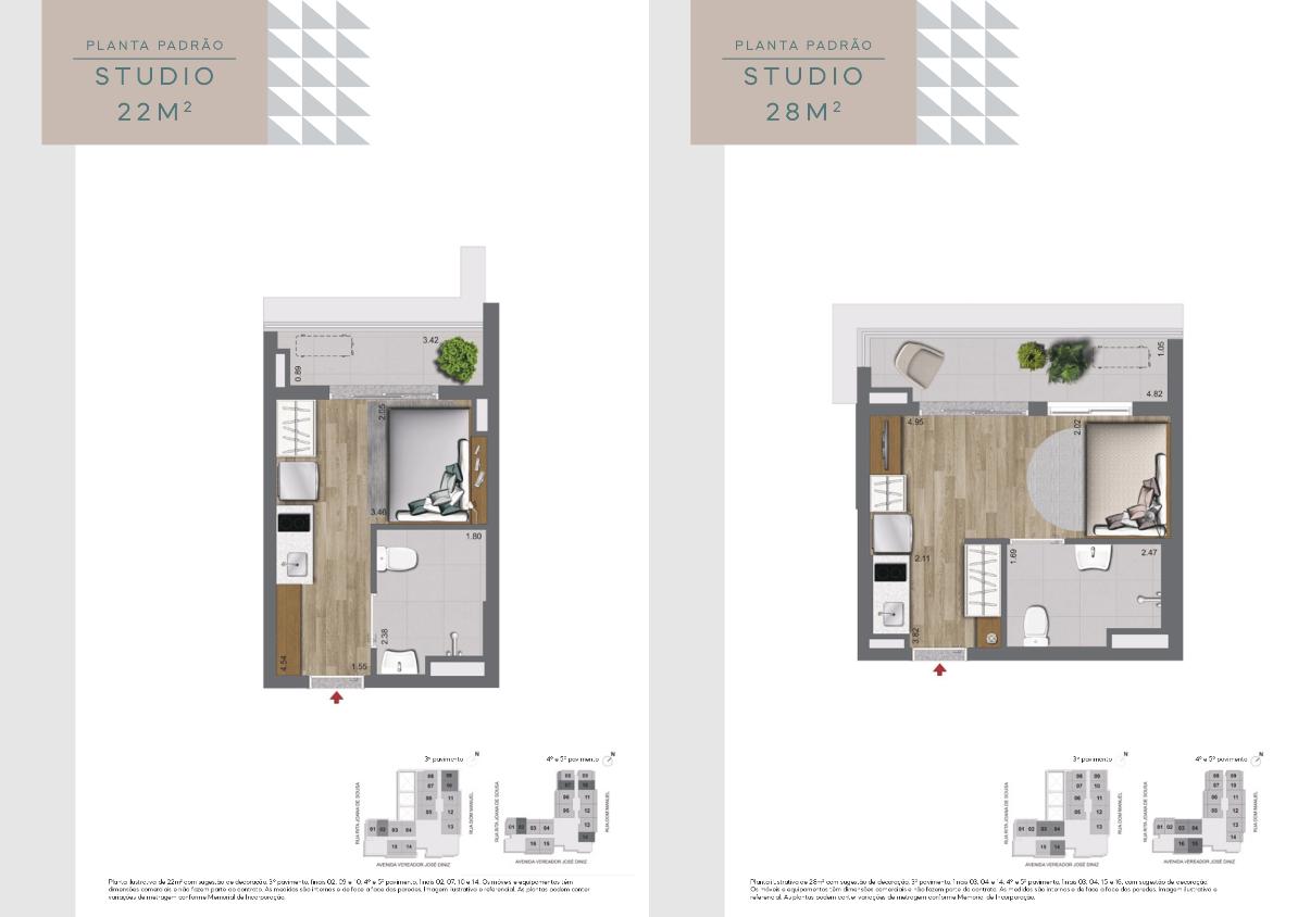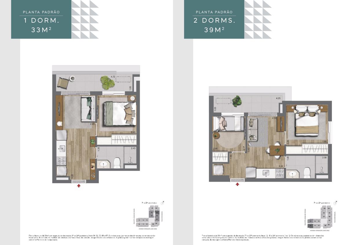 Studios, 1 e 2 dormitórios